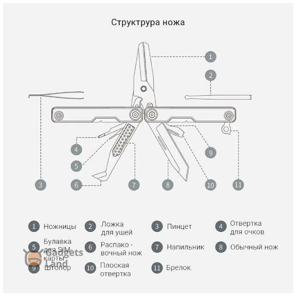 Мультитул Xiaomi HuoHou MINI HU0140 сочетает в себе возможности сразу 11 различных инструментов. Среди которых: кольцо для ключей, открывалка для бутылок, мини отвертка, нож, плоская отвертка, булавка для SIM-карты, крючок, нож для вскрытия посылок, пилка для ногтей, пинцет, ножницы.